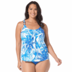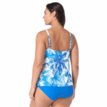 Chic style and feminine coverage come together in this palm tree print tankini top. A flyaway hem makes this a not-too-snug option tankini swim top with extra airy comfort. Pair it with a coordinating bottom and cover ups for a complete look.