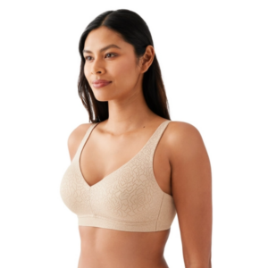 - Pretty stretch floral-lace galloon outer cup to create high apex and give forward projection