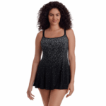 Feel the fit. Love the hug. Feel like royalty in this swingy swim dress. Princess seams sculpt and smooth, while thoughtful tummy control gives you that perfect, flattering fit for a classic and comfortable look and feel. Featured in Sparkle Falls, a cascade of shimmer, like falling stars across a midnight sky.