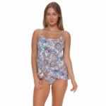 The Elena Tankini flutters to life with an asymmetrical hem that catches the sea breeze at every step. A floating bra, complete with underwire and a hook-and-eye closure, give this top no-slip support. Fully adjustable straps make this a customizable fit for playful moments.
